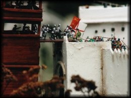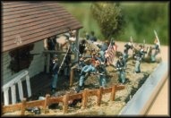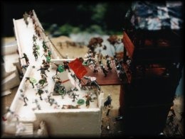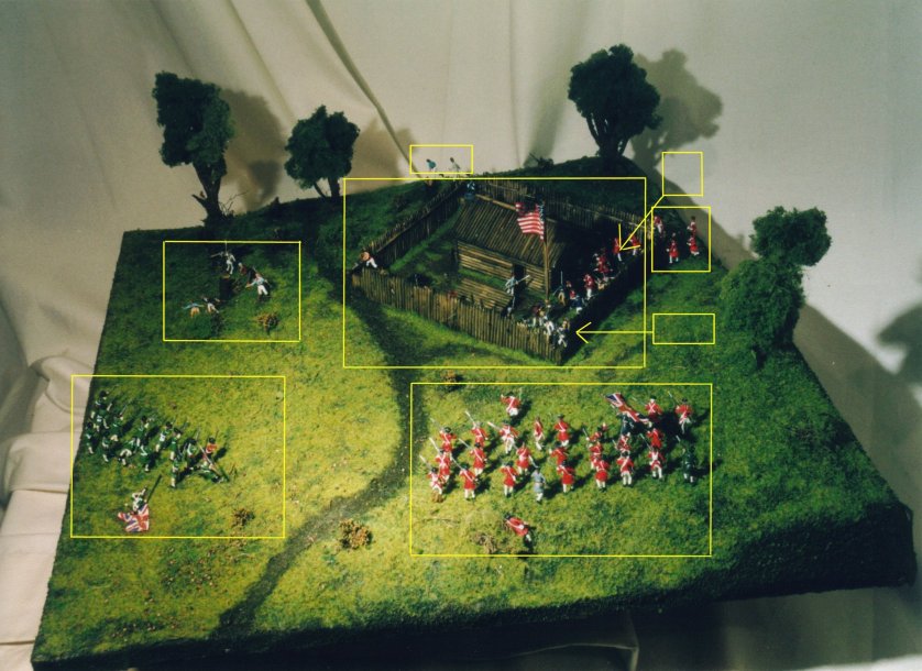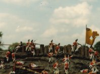 A diorama of the battle of New Orleans. Click on the highlighted areas to view a close up. |